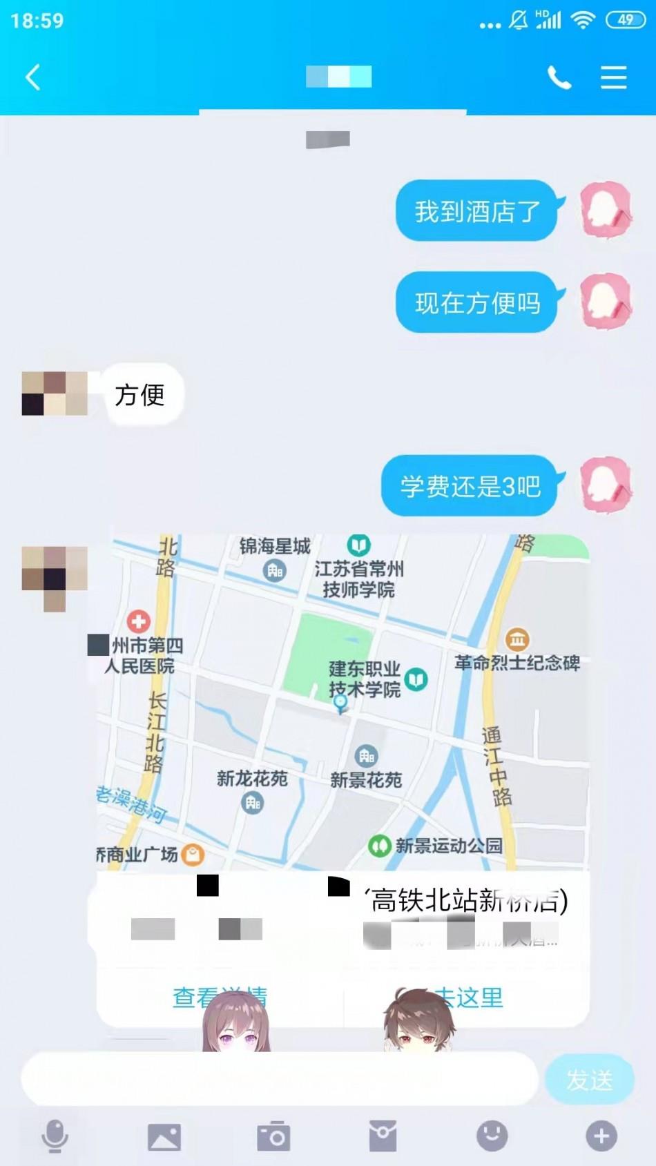 刚好出差常州,这个妹子是以前本站看到的,就联系了一下,她住在常州北站附近,我就按照指示,在附近开的房
