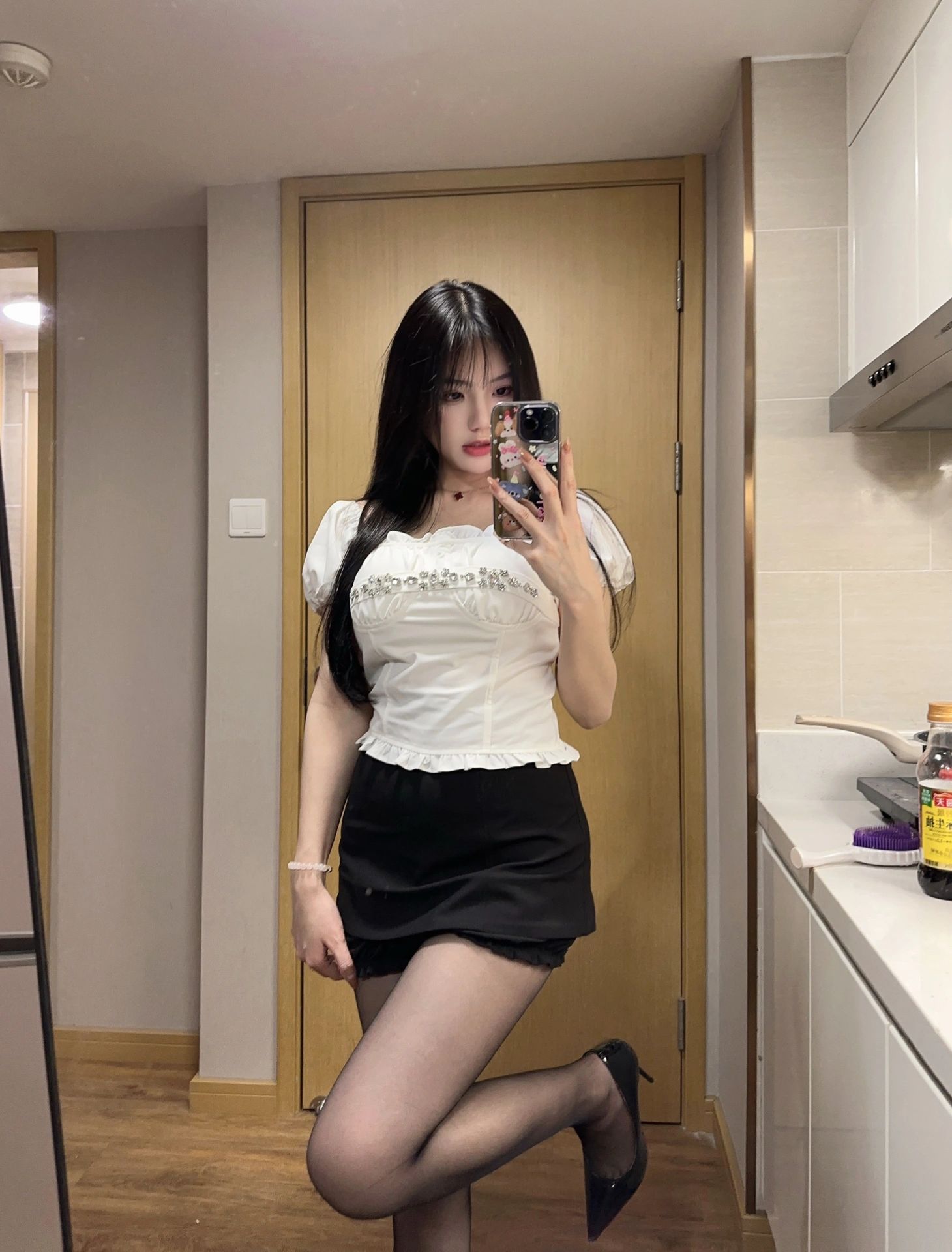 自己有地方,进门洗个澡就在床上穿黑丝等你了,先帮你口,然后用胸,最后受不了了直接插进去,第二次可以不